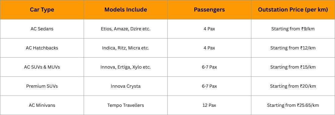 - Outstation & Long-Distance Travel